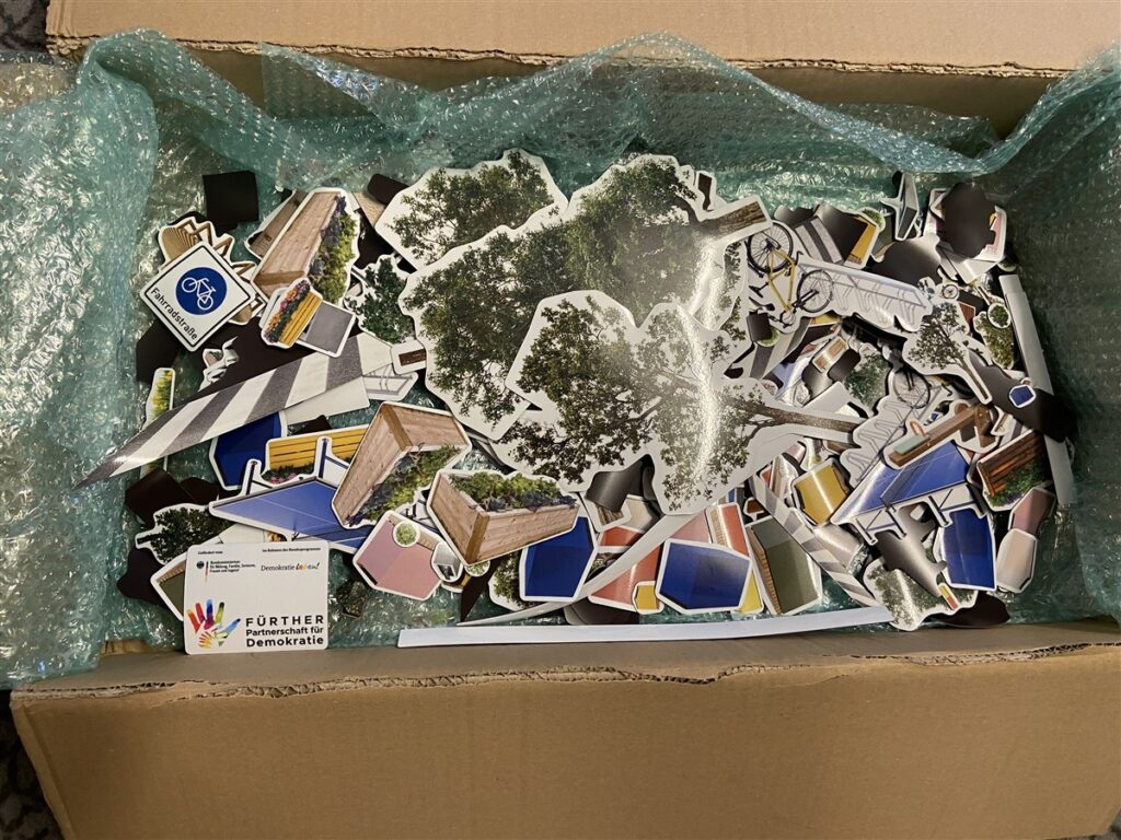 Das Tool bildet einen realen Kartenausschnitt oder Straßenzug ab, der mithilfe maßstabsgetreuer, magnetischer Planungselemente gemeinsam neu gestaltet werden kann.