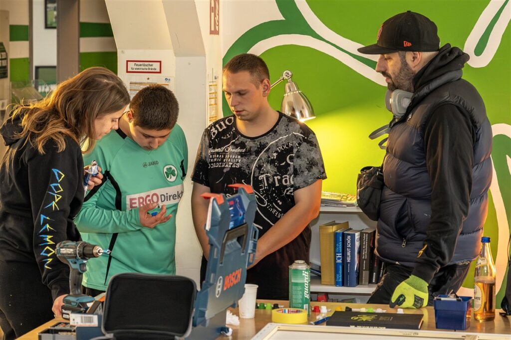 Diese Inhalte wurden mit den persönlichen Erfahrungen der Teilnehmenden verknüpft, insbesondere im Kontext von Fußball und Fankultur. Anschließend erfolgte eine pädagogisch angeleitete Einführung in die Graffiti-Kunst: Grundlagen, Techniken, Bildaufbau und Sicherheitsaspekte wurden erklärt und praktisch erprobt.